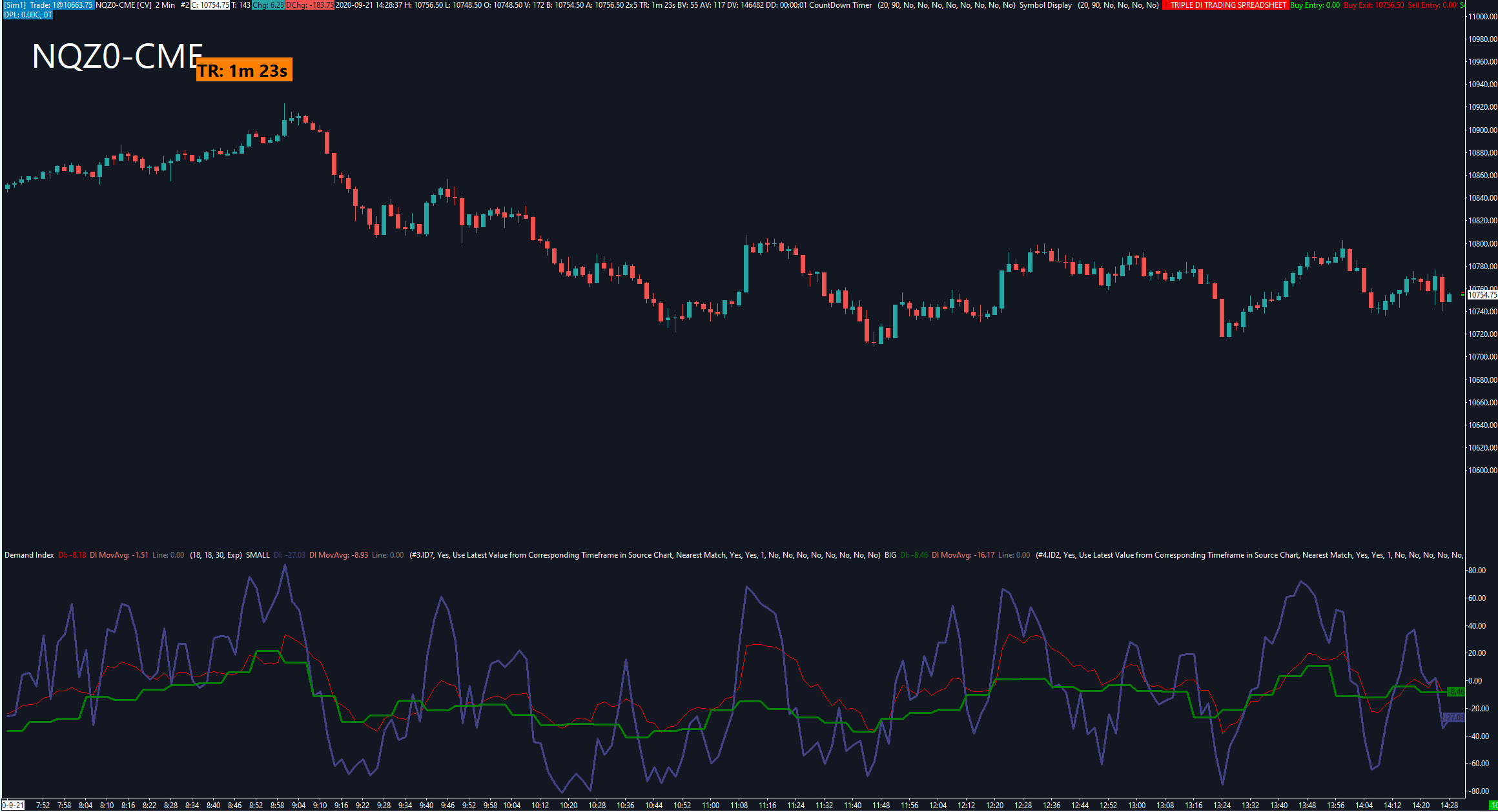 I'm currently trying to make some calculations with the Demand index of which need the values of 3 different timeframes. When I use the Study/Price overlay study it works, but the data changes in the past cause of the time difference. Ex. 1 minute has 1 minute intervals, 5 minute has 5 minute intervals, but i need the 1 minute intervals of the 5 minute Demand index. Is there any possible way of getting that because these are not the same as the 1 minute. On the support website it said to contact support if you encounter any of these referencing problems with a built-in study ( Study/Price Overlay Study: Data Changing at Chart Bars Earlier Than Being Referenced in Source Chart), hence this post. Thanks in advance! |