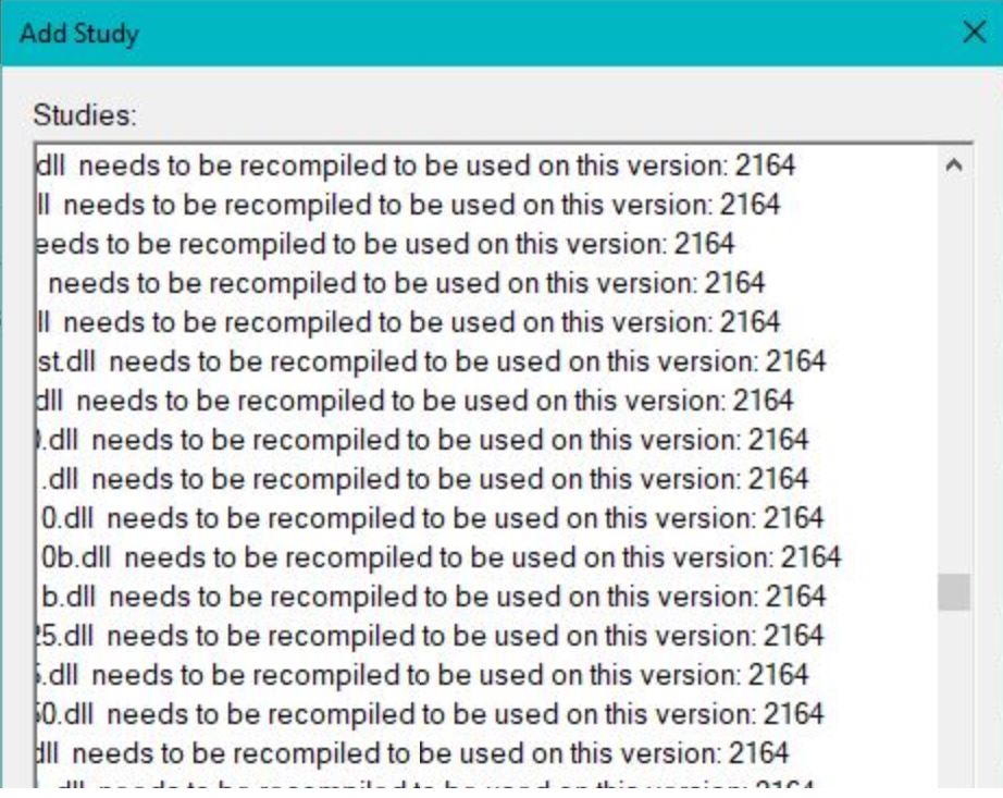 Please see the attached file. All my studies need to be recompiled. They were running fine before. Actually, since it is your software and your updated version, I hoped that you would know why.