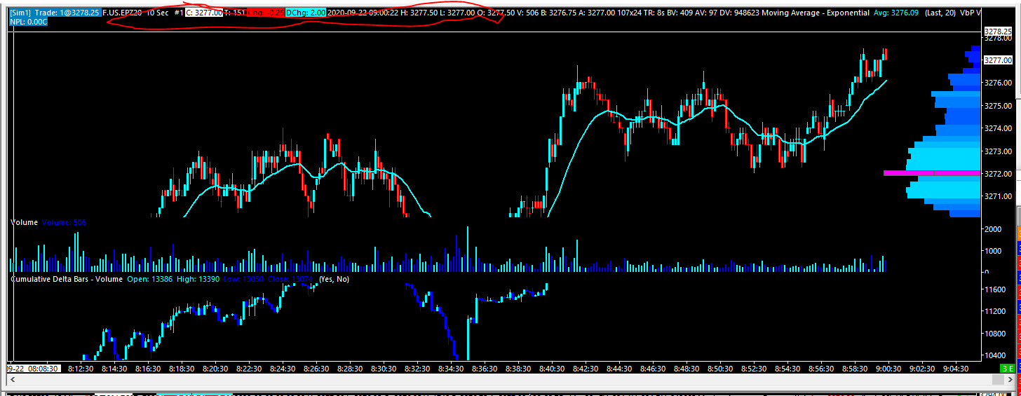 Refer to: Working With Charts: Region Data Line / Chart Header Sierra Chart Support - Engineering Level Your definitive source for support. Other responses are from users. Try to keep your questions brief and to the point. Be aware of support policy: https://www.sierrachart.com/index.php?l=PostingInformation.php#GeneralInformation For the most reliable, advanced, and zero cost futures order routing, *change* to the Teton service: Sierra Chart Teton Futures Order Routing |