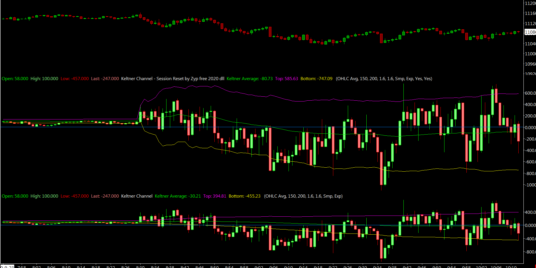 (1) keltner yes, but not the one in Sierrachart ... must be modified. (2) Linda only solves extremes. You can solve this on your own via a chart that only shows the trading session and transfer the average of the long period Keltner to your chart via price overlay. Try it (2) or write me a DM for study (1). Date Time Of Last Edit: 2020-09-24 15:27:15