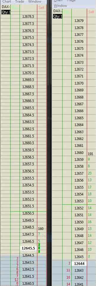 Hello, Some trouble with EUREX DAX 25 contract DOM : - no ask depth - incorrect painting of price above/below last price. Noticed it a couple of days ago. Everything is fine for : DAX - 5 FGBL EUROSTOXX 50 Thanks in advance, Regards JM |