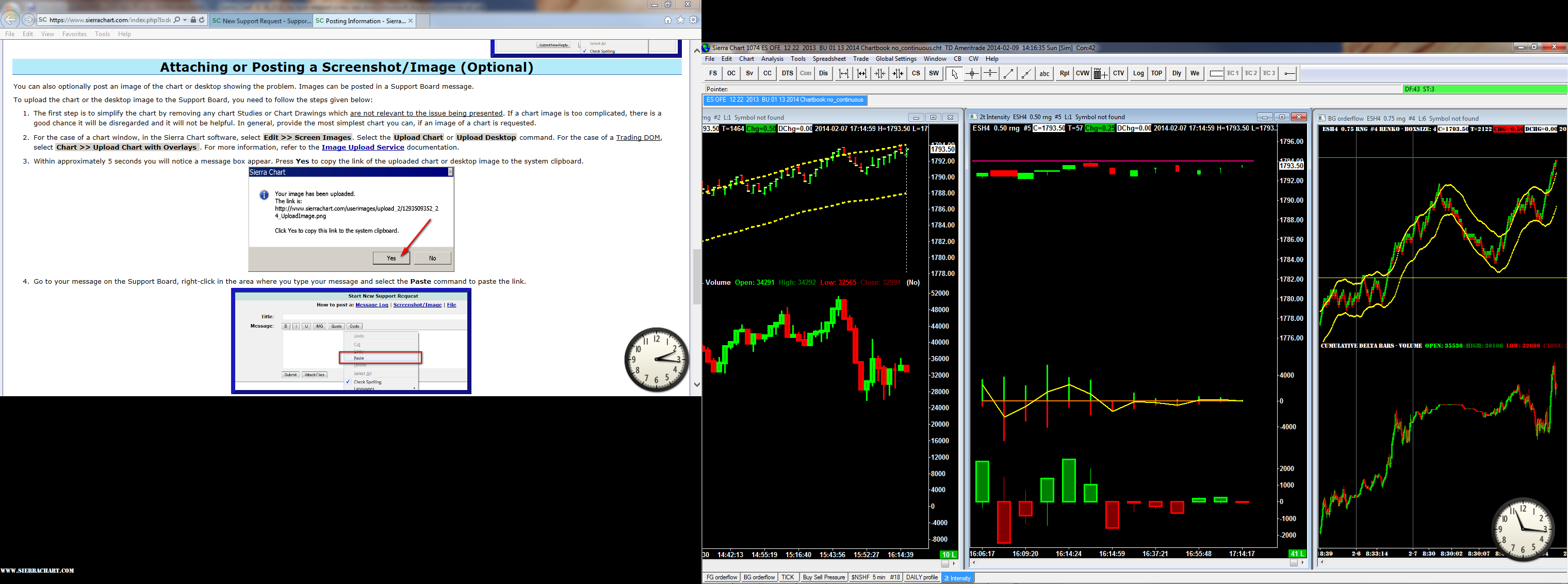 On 2014-02-04 I posted a message, to which I received a response. I have followed the instructions in that response. I am still not able to get the data feed to work. My charts work properly when I am using Barchart data feed service direct from Barchart and they work properly with I select SC Historical Data for the Data/Trade Service Settings, using ESH4 as the symbol. The following is an image of my chart book working properly. http://www.sierrachart.com/image.php?l=1391973162405.png My TD Ameritrade account has over $500 in it. When I switch to TD Ameritrade I get an error message DOWN LOAD FAILED, and on my charts I see SYMBOL NOT FOUND. The following is an image of my chart book after connecting to TD Ameritrade. http://www.sierrachart.com/image.php?l=1391973399429.png I have checked the box Allow Support For Sierra Data Feeds on the Data/Trade Service Settings. It has been 1 week since I signed up for the SC Data feed and I have not been able to get it to work. What do I need to do to get it to work? Thank you Fred |
