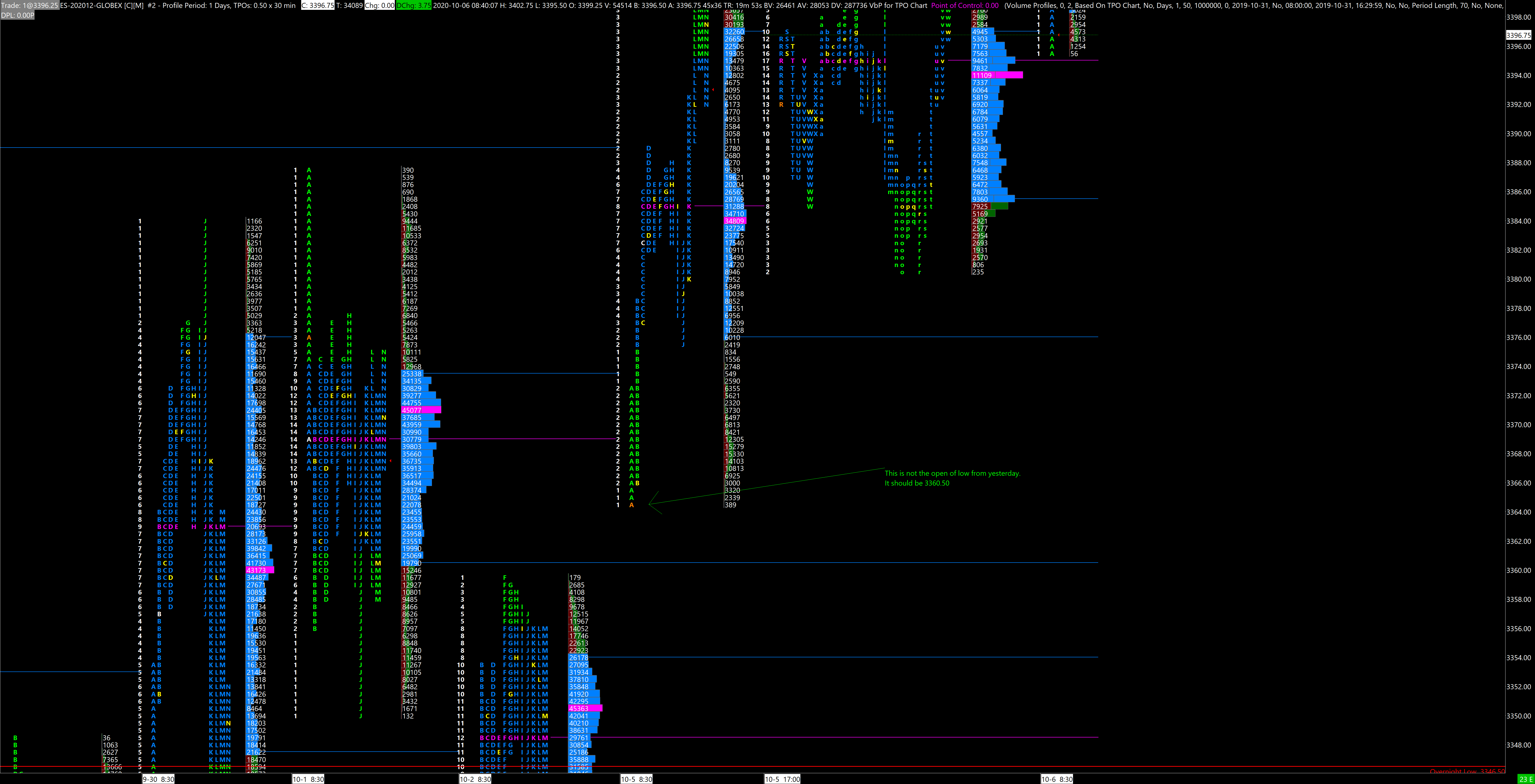 My TPO charts are changing values and are not accurate. The low of 10/05 is 3360.50 and that was what the chart showed yesterday while I was trading. This morning it shows 3364.50. I deleted data and downloaded and I also upgraded to the current version of Sierra. Neither of these made any difference. Can you please help me determine what is going on? I have been using these TPO charts for months without issue. Screenshot link http://www.sierrachart.com/image.php?Image=1601991614414.png |