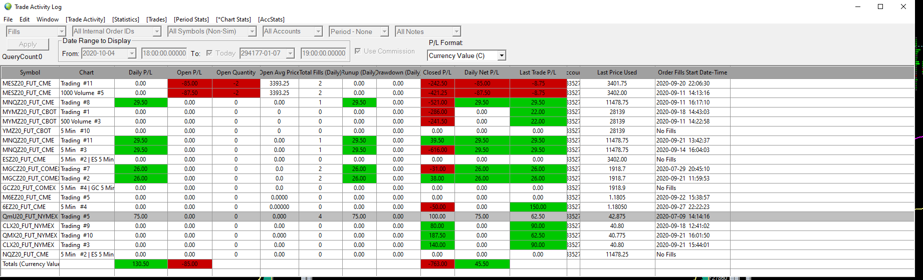 Adjust this setting to the current Date-Time for that particular Trading DOM #5 : Chart Settings: Order Fills Start Date-Time (Chart >> Chart Settings >> Trading menu) Sierra Chart Support - Engineering Level Your definitive source for support. Other responses are from users. Try to keep your questions brief and to the point. Be aware of support policy: https://www.sierrachart.com/index.php?l=PostingInformation.php#GeneralInformation For the most reliable, advanced, and zero cost futures order routing, *change* to the Teton service: Sierra Chart Teton Futures Order Routing |