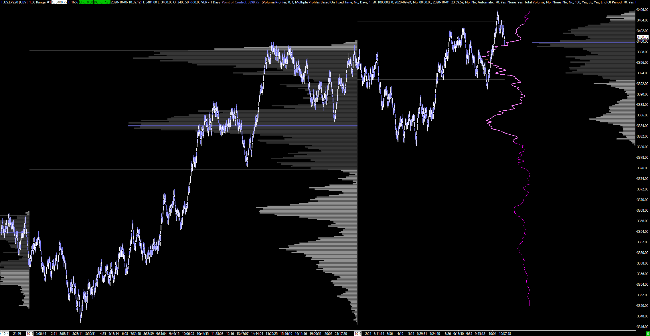 Hello, I would like to plot 2 Volume Profiles which overlap on the right side of the chart. 1. A daily right - alligned session profile 2. A multiday volume profile outline I would like both to be "stuck to the right hand scale and would like to be able to move the underlying price chart without moving the profiles. I can make this happen by selecting "Always display last Profile within view" on both profiles but then the profiles are stacked and do not overlap. Is there a way to set this that both profiles overlap and are stuck to the right scale? Thank You for the help. http://www.sierrachart.com/image.php?Image=1601995154734.png Date Time Of Last Edit: 2020-10-06 15:05:17