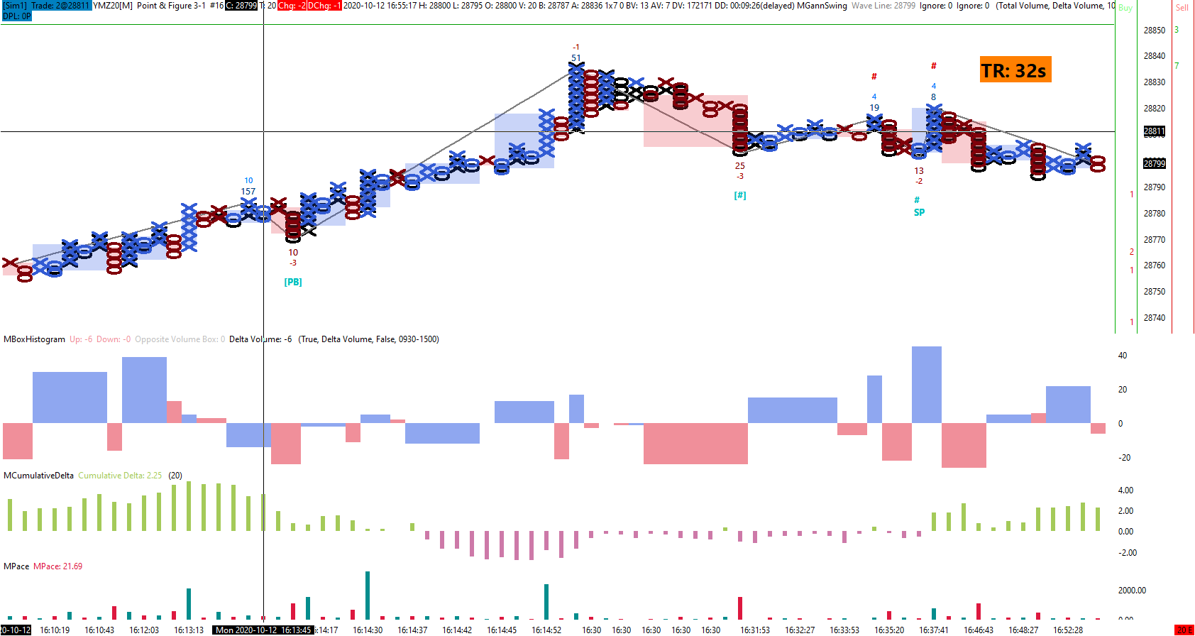 In Chart >> Chart Settings >> Time Period per Bar select Point and Figure. Refer to the information here: Chart Settings: Point and Figure Bar (Intraday Charts) (Chart >> Chart Settings >> Bar Period >> Intraday Chart Bar Period Settings >> Bar Period) Then you also need to set Chart >> Chart Settings >> Graph Draw Type to "Point and Figure". Refer to the information here: Chart Settings: Graph Draw Type (Chart >> Chart Settings >> Bar Period >> Graph Draw Type menu) For the most reliable, advanced, and zero cost futures order routing, use the Teton service:  Sierra Chart Teton Futures Order Routing  |