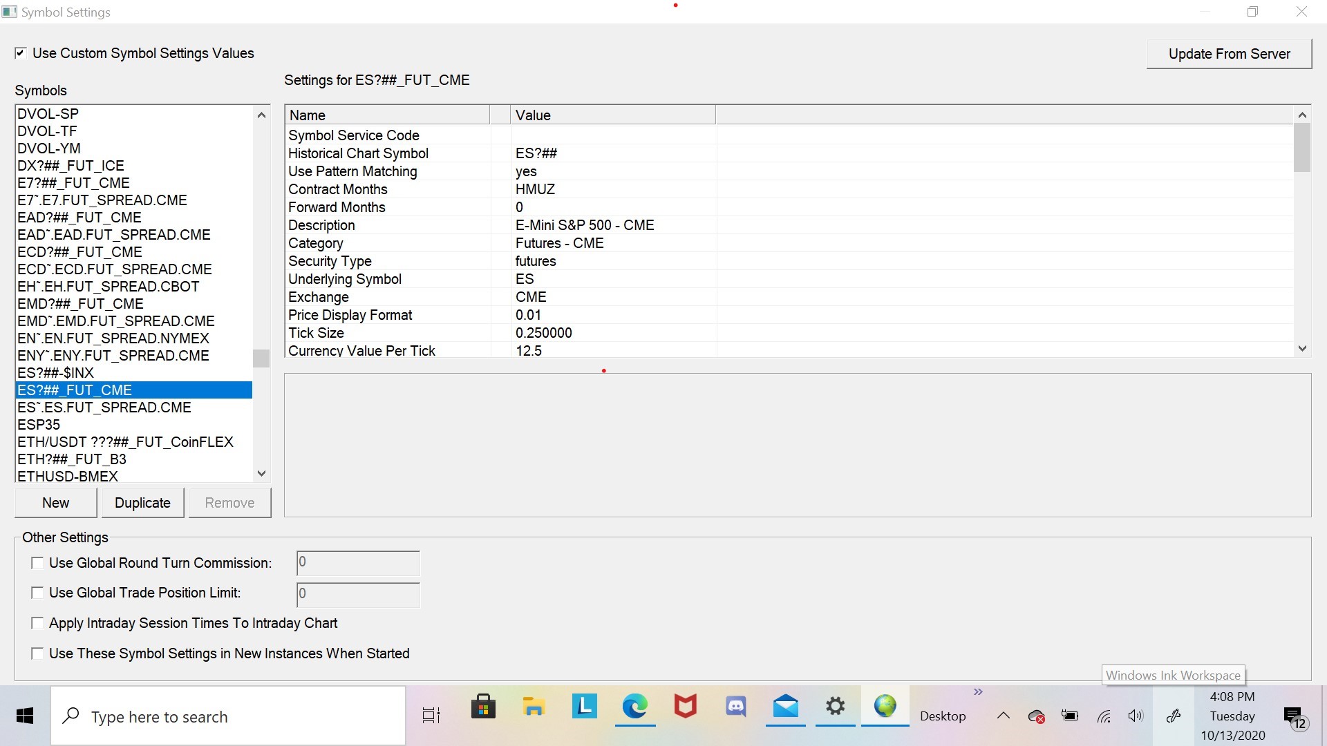 We are going to be re-implementing the Symbol Settings window which will solve the problem of not being able to access the buttons at the bottom. For now move your Windows taskbar to the left or right side of your screen or hide it. Allow about one month for this to be done. Sierra Chart Support - Engineering Level Your definitive source for support. Other responses are from users. Try to keep your questions brief and to the point. Be aware of support policy: https://www.sierrachart.com/index.php?l=PostingInformation.php#GeneralInformation For the most reliable, advanced, and zero cost futures order routing, *change* to the Teton service: Sierra Chart Teton Futures Order Routing Date Time Of Last Edit: 2020-10-13 20:57:02