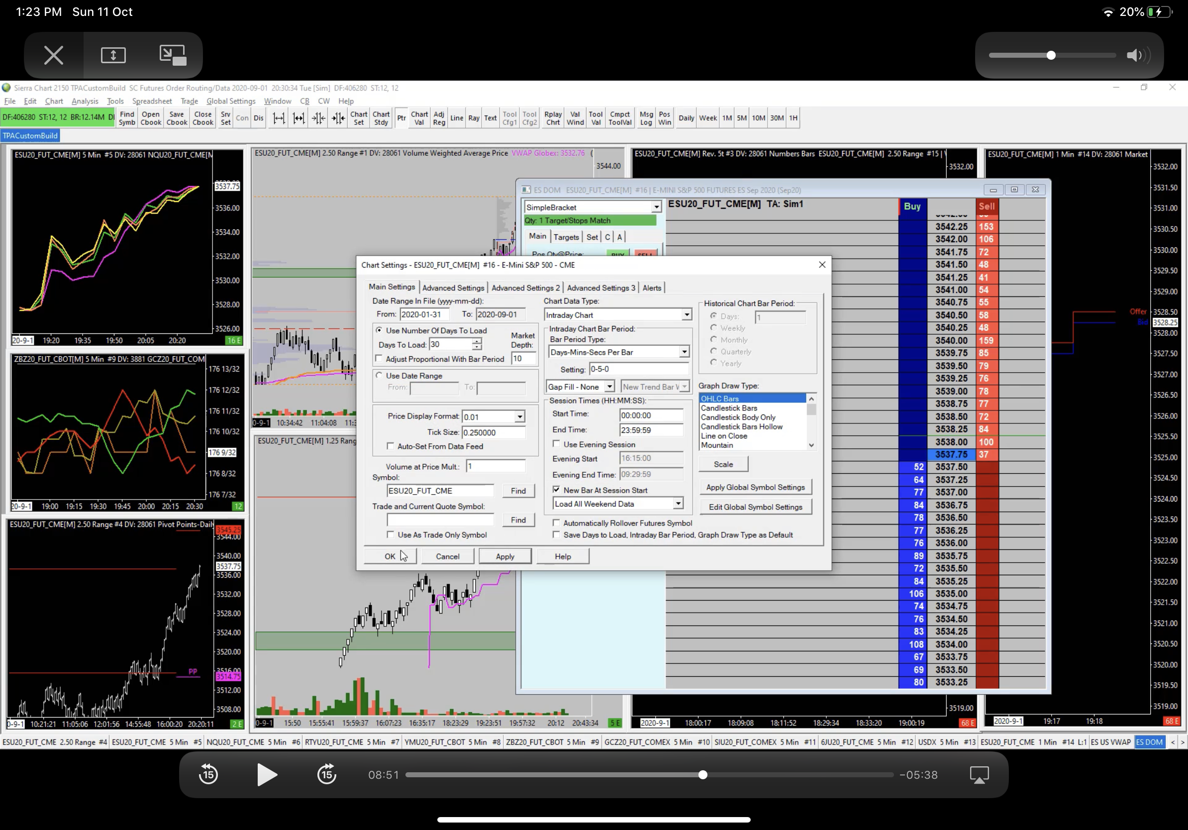 With regards to the Symbol Settings page, the OK and Cancel are hidden behind the Task Bar at the bottom. But it looks like the window is maximized, so you should be able to just un-maximize it and then be able to get to the OK and Cancel buttons. You can also click the X in the upper right to close it, and then when you open it again, it should be its normal size. We are not sure what you are trying to show with the other image. In general, refer to the instructions for the Replay here: Replaying Charts: Basic Chart Replay Instructions For the most reliable, advanced, and zero cost futures order routing, use the Teton service: Sierra Chart Teton Futures Order Routing |