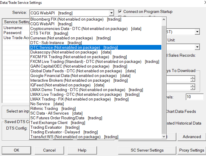 Hi there, I tried to connect to the DTC server using sierra chart (DTC Service), but I keep getting message that it's not available for my package. I have valid/active sierra account pkg5 (via AMP/CQG) and same time I am working on custom DTC protocol server implementation. I was able to connect DTC server using DTC Sub instance, but it seems I cannot test full DTC functionality, like pulling history data, exchanges, symbol definition etc... Thanks, Lukasz |