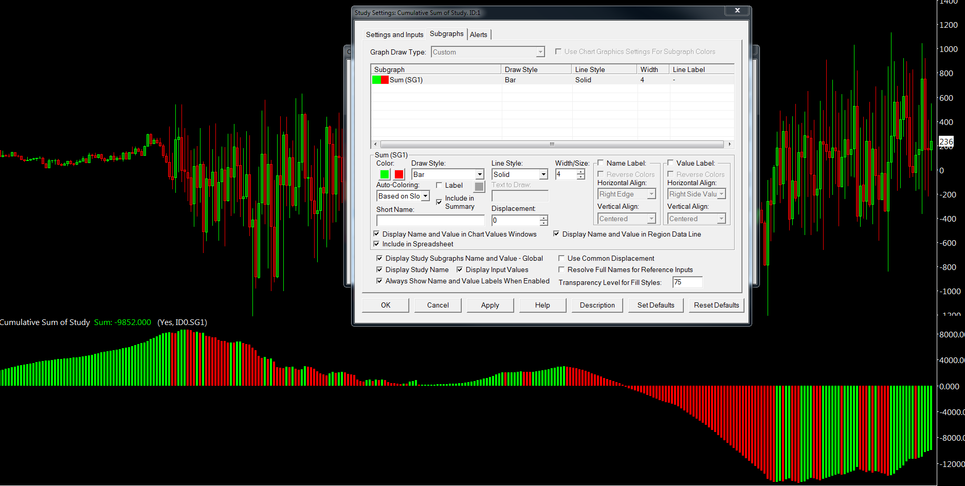 Change the Subgraph Draw Style to Bar. Refer to the information here: Chart Studies: Bar (ACSIL: DRAWSTYLE_BAR) For the most reliable, advanced, and zero cost futures order routing, use the Teton service: Sierra Chart Teton Futures Order Routing |