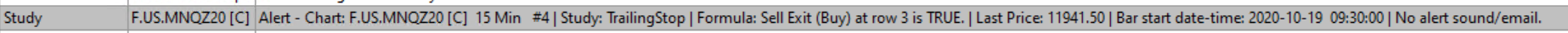 I have the below exit conditions in the spreadsheet. It is a simple trailing by 2 bars after the entry bar is closed. But about half of the time, the trade is closed as soon as the entry bar is closed. Today is an example. My entry was executed on 9:30 bar, but as soon as the 9:30 bar is closed, the trade is closed. Buy Stop =AND(AND(AND($J$8 > 0, A3 > J42), J41 > A3),(E3 < MIN(D4, D5))) Sell Stop =AND(AND(AND($J$8 < 0, A3 > J42), J41 > A3),(E3 > MAX(C4, C5))) I am using version 2175. |