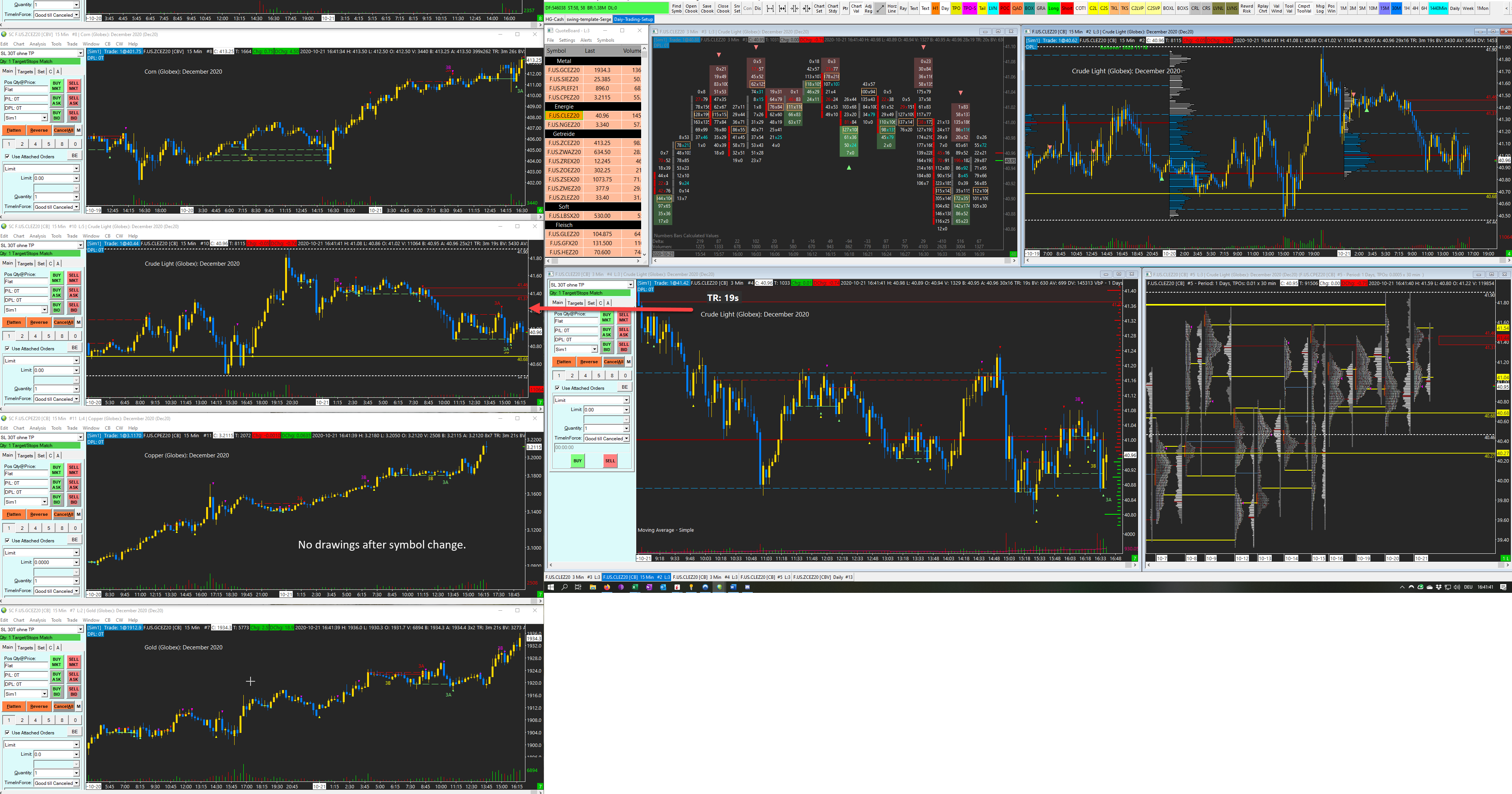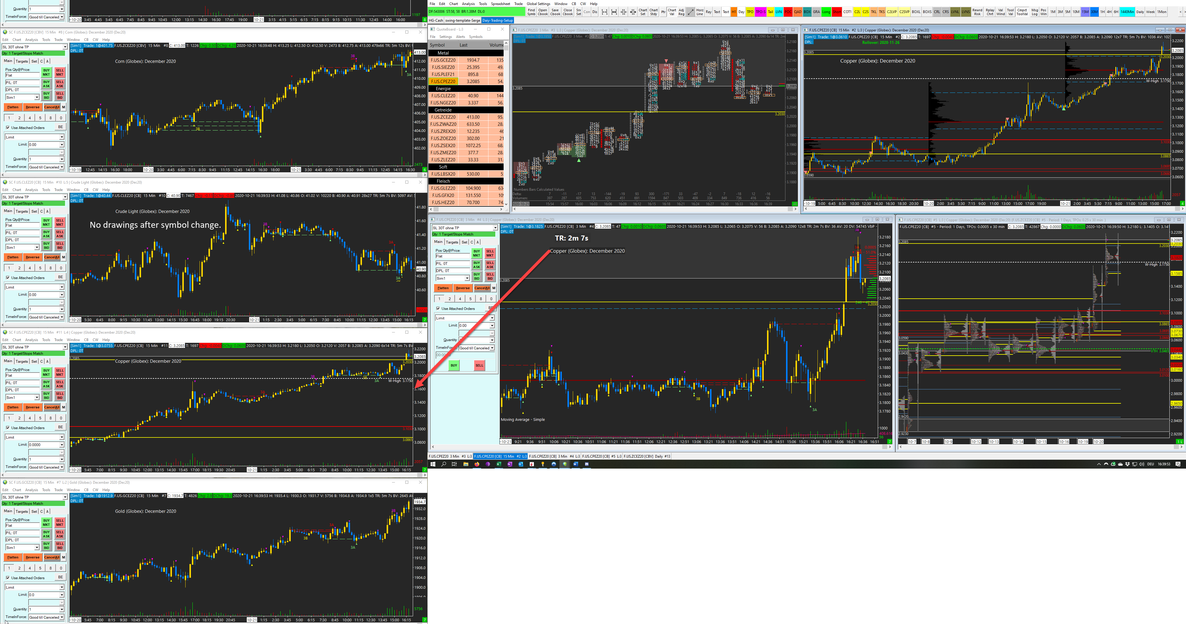 Hi, I have a problem with – copy chart drawings from chart#- since the update 2182. I draw my lines in the main windows, and on my other monitors, I have each market in separate chart windows. If I change the symbol (QuoteBoard) on the main window, all my drawings disappear on my separated chart. If I go back to the same symbol, the chart drawings are back. Could you tell me how I could fix that issue? Thank you for your effort. |