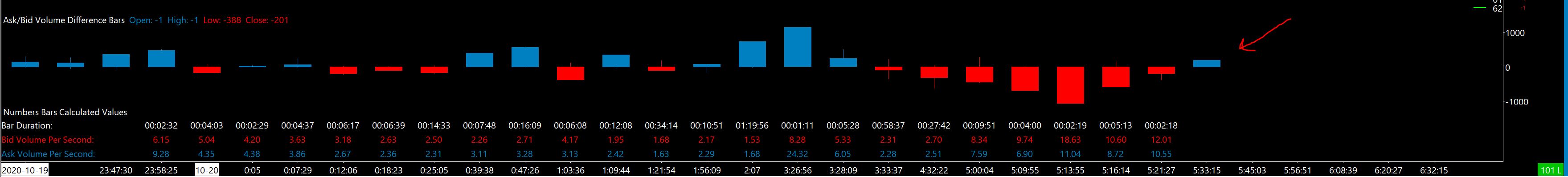 1) "Trading Evaluator | Logon error received from server: Trade account not assigned | 2020-10-20 01:58:49.615" - it's working now but thought I'd share this with you 2) Got this extra bar that showed up on the Ask/Bid vol difference bar study - image attached Please advise. Thanks |