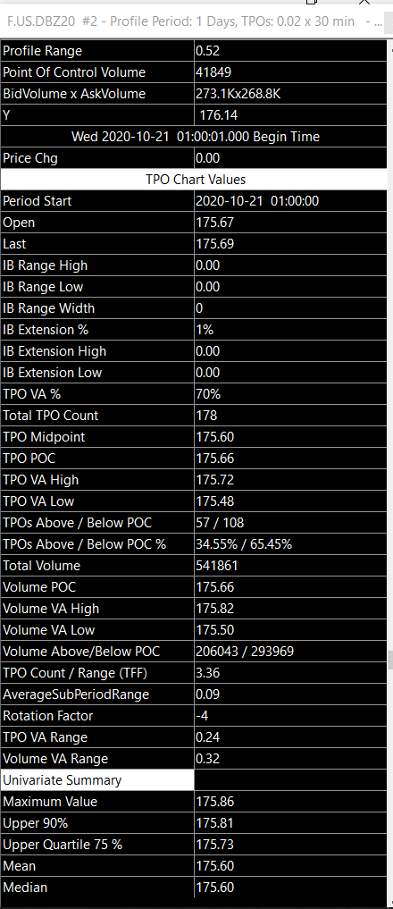 You cannot change those items that are displayed in the Tool Values Window for the TPO. But all of those items are available to be displayed on the chart above/below the TPO itself. Refer to the documentation starting at the following section and the 3 sections after it: Time Price Opportunity (TPO) Profile Charts: Show Chart Values On Profile For the most reliable, advanced, and zero cost futures order routing, use the Teton service: Sierra Chart Teton Futures Order Routing |
