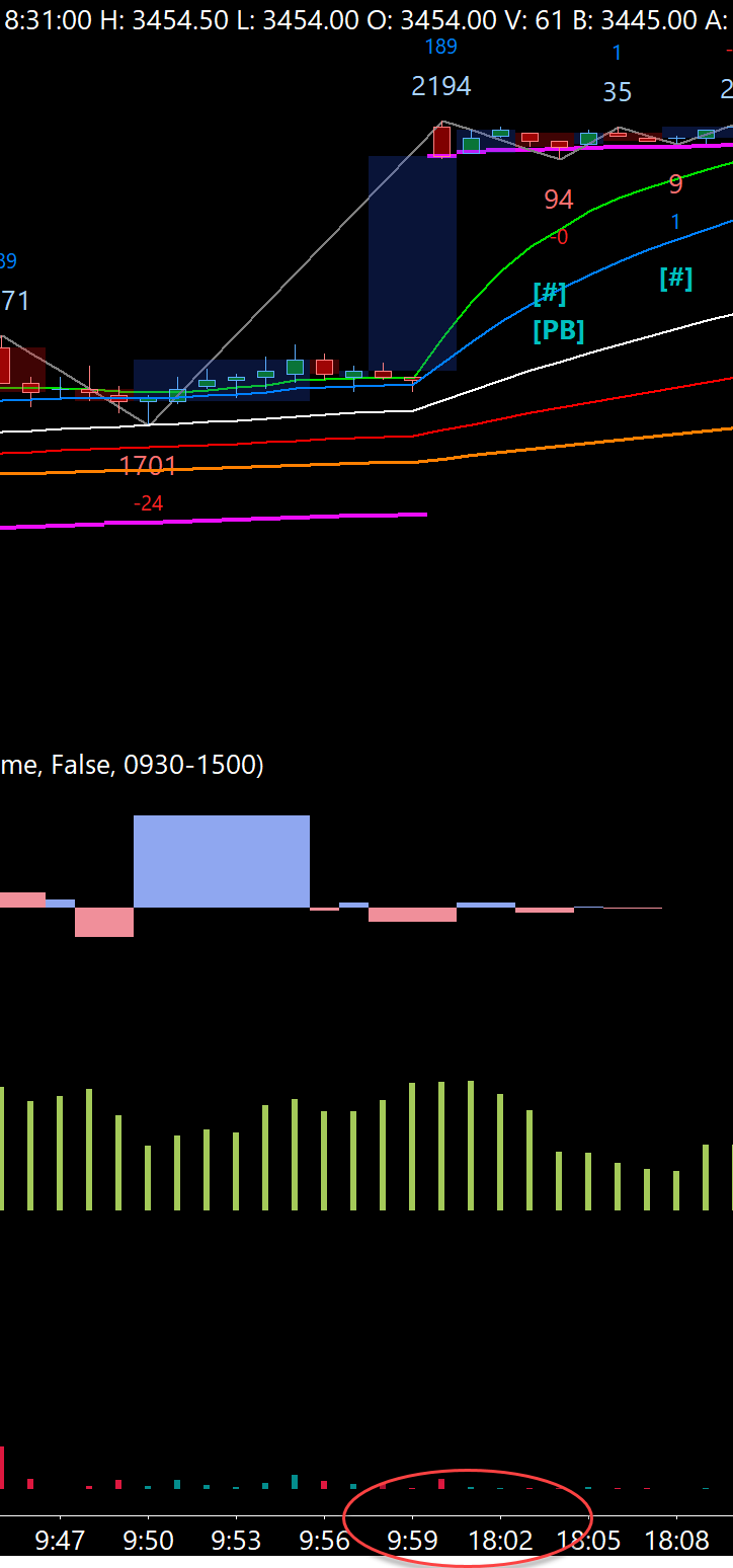 So when going back on my charts in the evening,when I go to the morning, it skips from 9:59 to 18:00 like the new session started at 10:00. I believe it's doing normal real time, but when the new session starts and I scroll back, 10:00 to 4:15 is missing. See attached photo. All my charts are doing this. Also see my settings attachment.