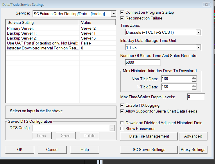 We do not see any problem with this. Try selecting Global Settings >> Sierra Chart Server Settings. And also the problem with High compression still exists, you need to use Standard Compression instead. Sierra Chart Support - Engineering Level Your definitive source for support. Other responses are from users. Try to keep your questions brief and to the point. Be aware of support policy: https://www.sierrachart.com/index.php?l=PostingInformation.php#GeneralInformation For the most reliable, advanced, and zero cost futures order routing, *change* to the Teton service: Sierra Chart Teton Futures Order Routing Date Time Of Last Edit: 2020-10-28 20:36:08