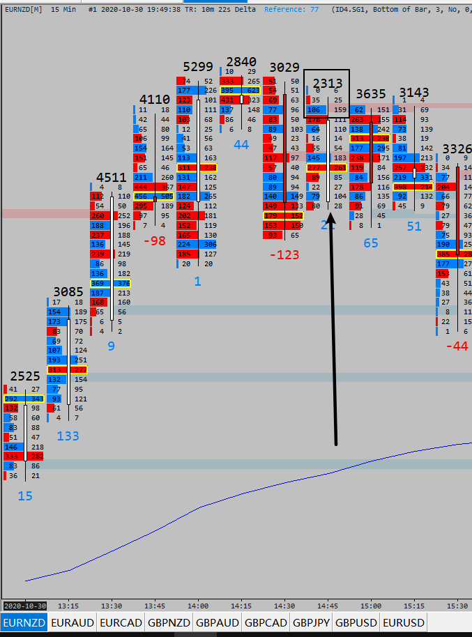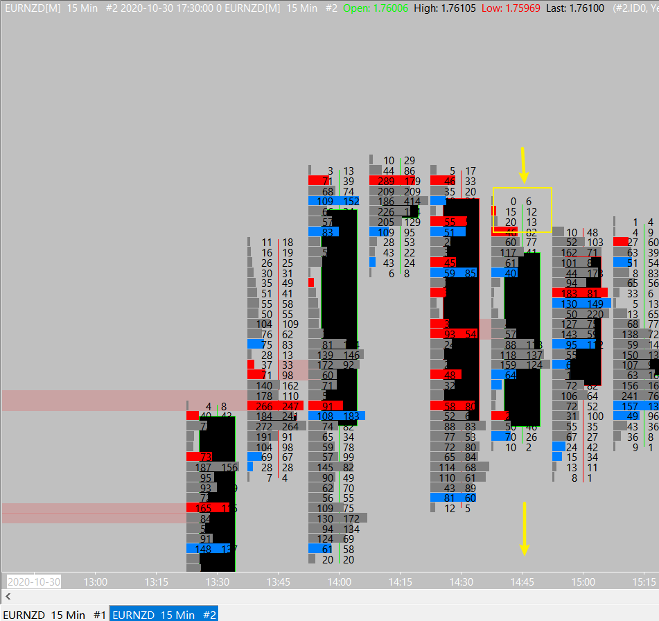The symbol is EURNZD, time zone is HK+8, time is 14:45 , I have draw a rectangle on the orderflow chart. Thanks.