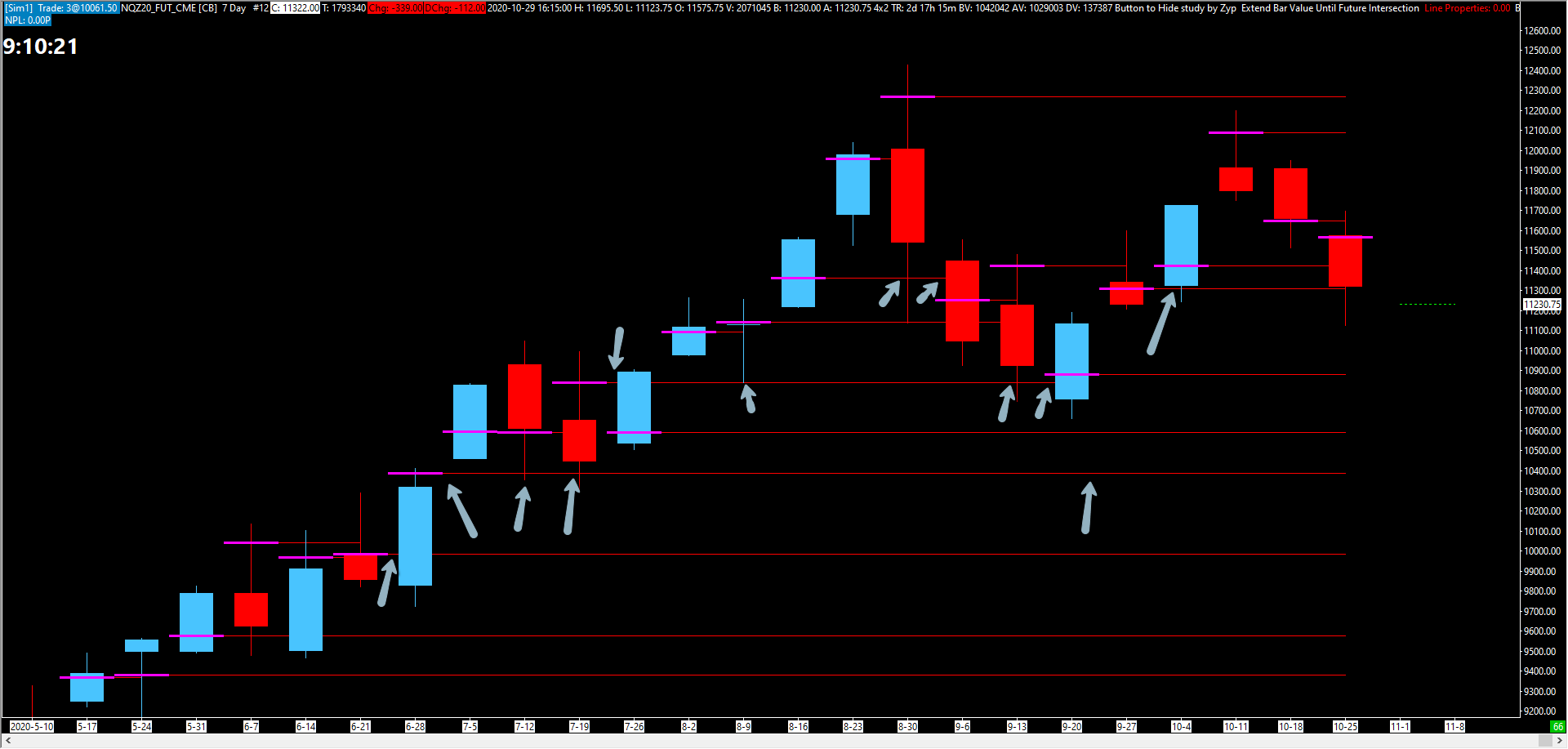 With regards to Post #4, this is not supported within Sierra Chart. You could do what you want by building a custom study and then updating the extension lines when a new inside bar is detected. Refer to the following for the information on custom studies: Advanced Custom Study Interface and Language (ACSIL): Introduction For the most reliable, advanced, and zero cost futures order routing, use the Teton service: Sierra Chart Teton Futures Order Routing |