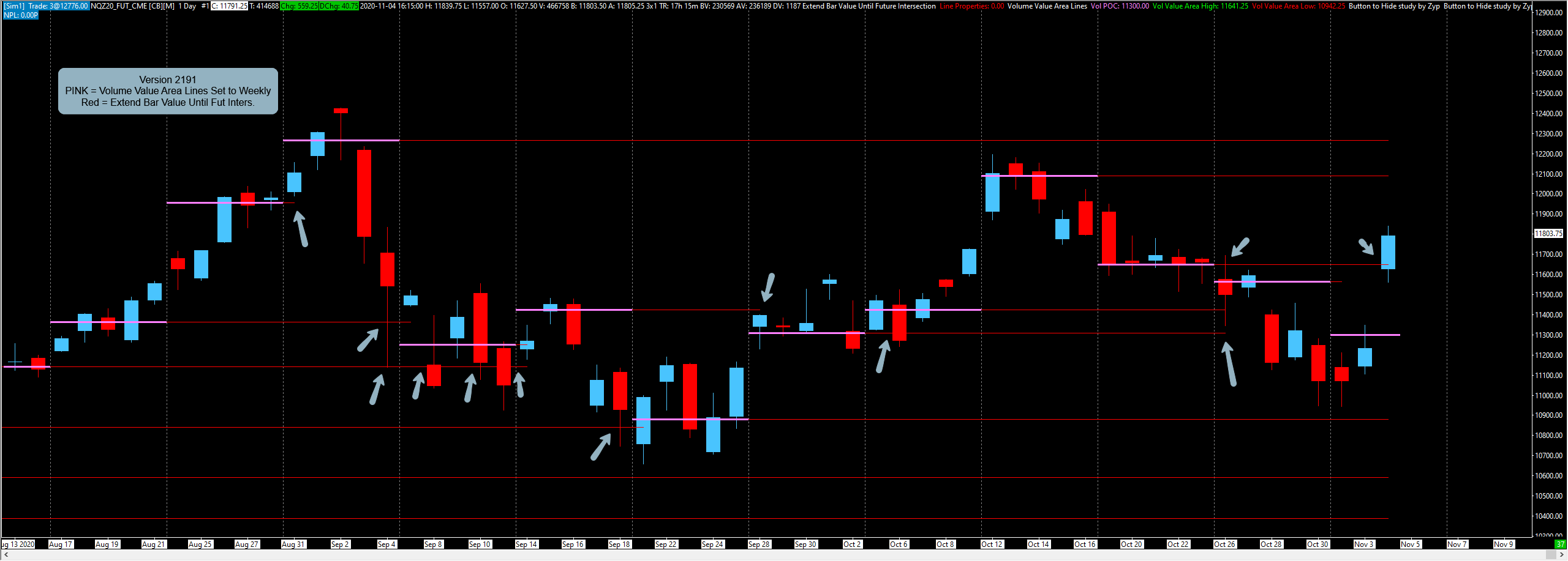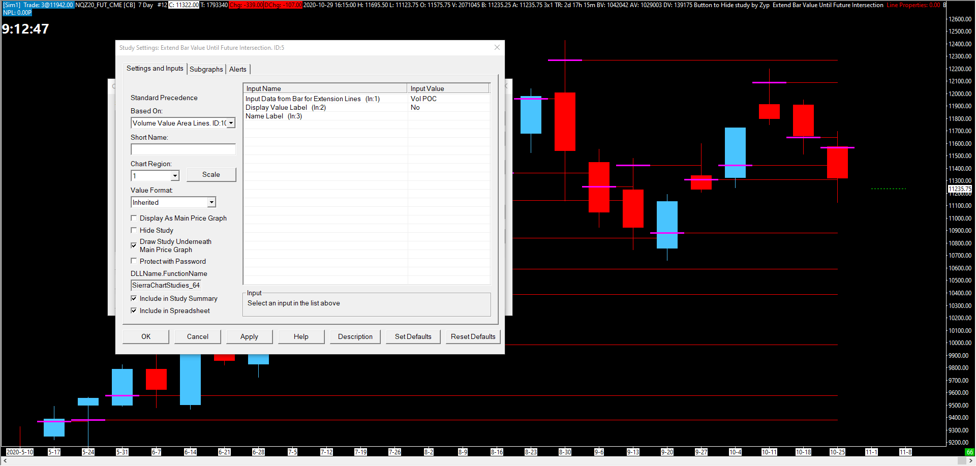 Hi, I can see from the name of the study (zyp) in the header in the chart that you are registered in our forum. Give me an hour and I will give an update for the study from the default Sierrachart list improved by what you need ... |