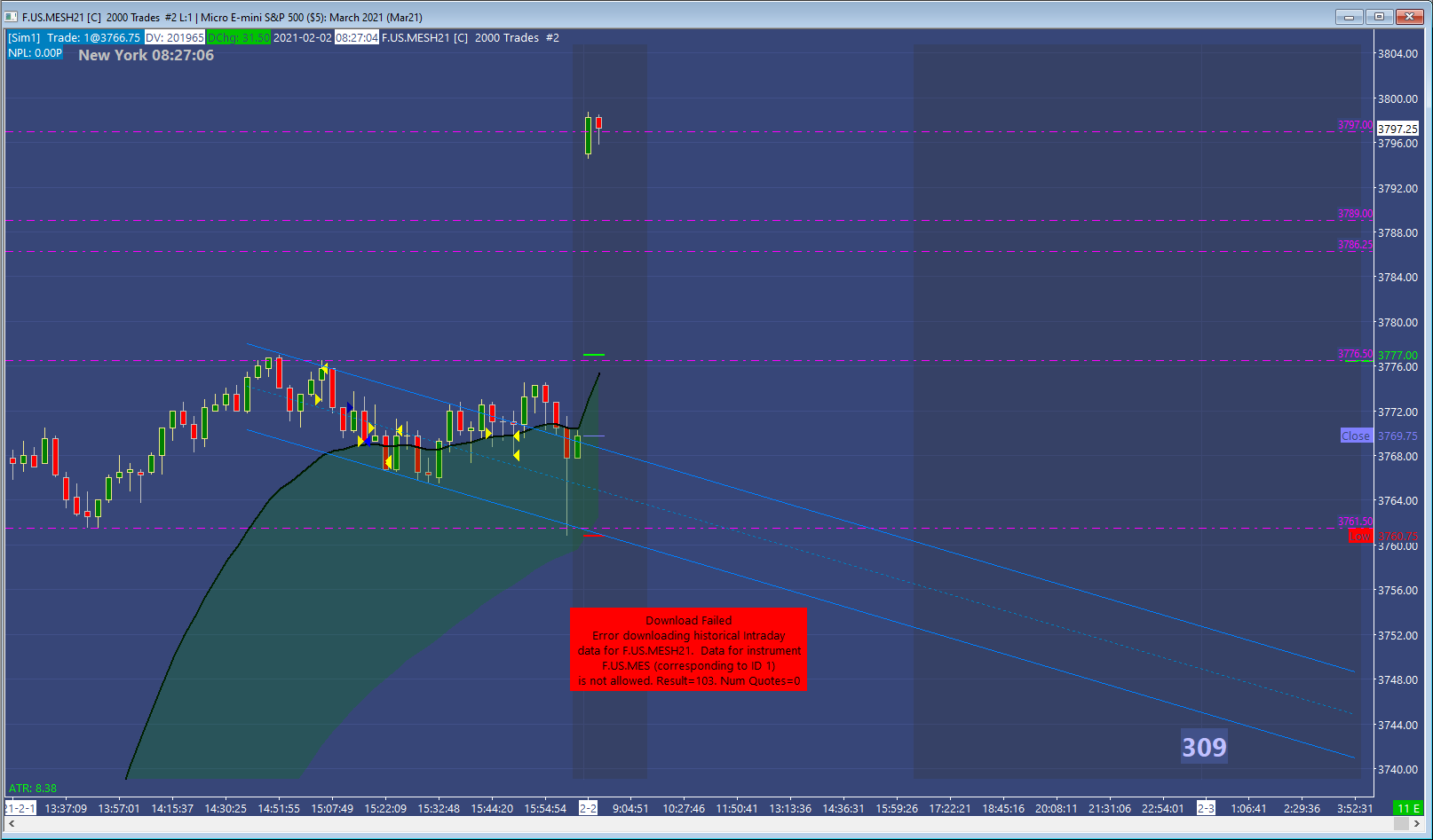 I have had a problem with the CME feed since early February 2021. You are no longer using the Denali Exchange Data Feed, as it did not renew on February 1, 2021 since you did not have enough funds in your account at the time of the renewal. The charges process around 02:00 UTC, therefore when you added funds to your account on February 1, it was too late. We see that you have tried to re-enable the exchanges, but were unable to do so, as you had not re-enabled the Exchange Data Feed itself. At this time, you should change your package to Package 10, which includes the data feed fee. You can then enable the exchange(s) you want. Refer to the information here for how to change your Service Package: Sierra Chart Purchase and License Information: Renewing Access As to the error you are getting, that is due to the fact that you have your Service set to CQG, so it is trying to get the data from CQG, but you are not enabled to get their data. Once you get the Denali Exchange Data Feed activated again, you will be fine. In addition, be aware of changes we have made to no longer subsidize historical data from CQG at this page: Jan 1, 2021 Changes to Historical Data: Interactive Brokers, CQG One final note - please start a new post when you have an issue. Do not continue in another unrelated thread. For the most reliable, advanced, and zero cost futures order routing, use the Teton service: Sierra Chart Teton Futures Order Routing |