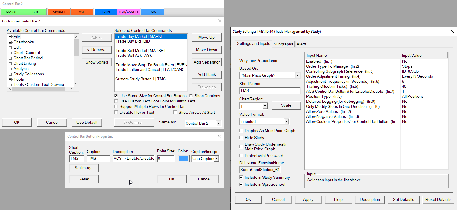 I have two questions: 1) how can I set the long / short buttons with the stop ... example within Long at 3500 stop 3498 ... 2) Custom Study Button1 / TMS allows me to position one stop? == A. |