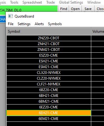 Those are all symbols that are traded on the CME Group. Therefore, you would use the Denali Exchange Data Feed. Refer to the Setup Instructions for the Denali Exchange Data Feed here: Denali Exchange Data Feed: *Setup Instructions: CME/CBOT/NYMEX/COMEX Exchanges* Just make sure you are aware that the CME Group requires that you have a trading account in order to qualify for the lower-priced CME Group Non-Professional Exchange Fees. For more information, refer to the following: Real-Time Exchange Data Feeds Available From Sierra Chart: Understanding and Accessing Data From the CME, CBOT, NYMEX, COMEX Exchanges For the most reliable, advanced, and zero cost futures order routing, use the Teton service: Sierra Chart Teton Futures Order Routing |