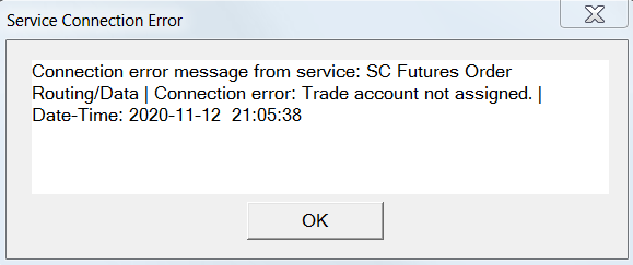 Thanks for your quick answer. I follow your instructions to connect to the SC Future Order Routing/Data and as expected there is this Service Connection Error, please refer to the attachment ! Which indicates, that the connectivity of the Sierra Chart programm side is working, right? |