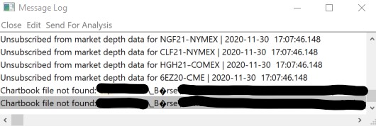 Regarding Post #1 it seems the version 2205 has fixed the encoding problem. Regarding Post #3 it seems the version 2205 does not fix the problem. Same Problem: "Chartbook file not found: C:\XXXXX\_Börse\XXXXXX.Cht | 2020-12-01 18:43:05.950 * "ö" will be displayed as in the attached screenshot. |
