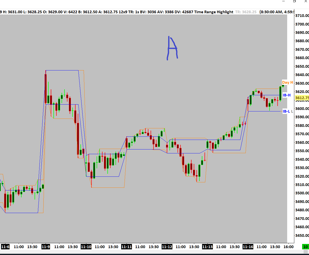 It appears your orange lines are the H/L for the day, which seem to change properly each day. The blue lines appear to be the problem. For an Initial Balance, try using the Initial Balance study. Date Time Of Last Edit: 2020-11-17 14:11:55