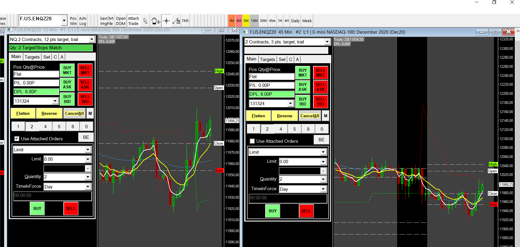 Is there a way to synchronize the trade panels on several charts so that making changes in any one of them will be automatically reflected in the others (e.g. changing the bracket order, number of contracts etc')? Attached is a screenshot. Thanks |