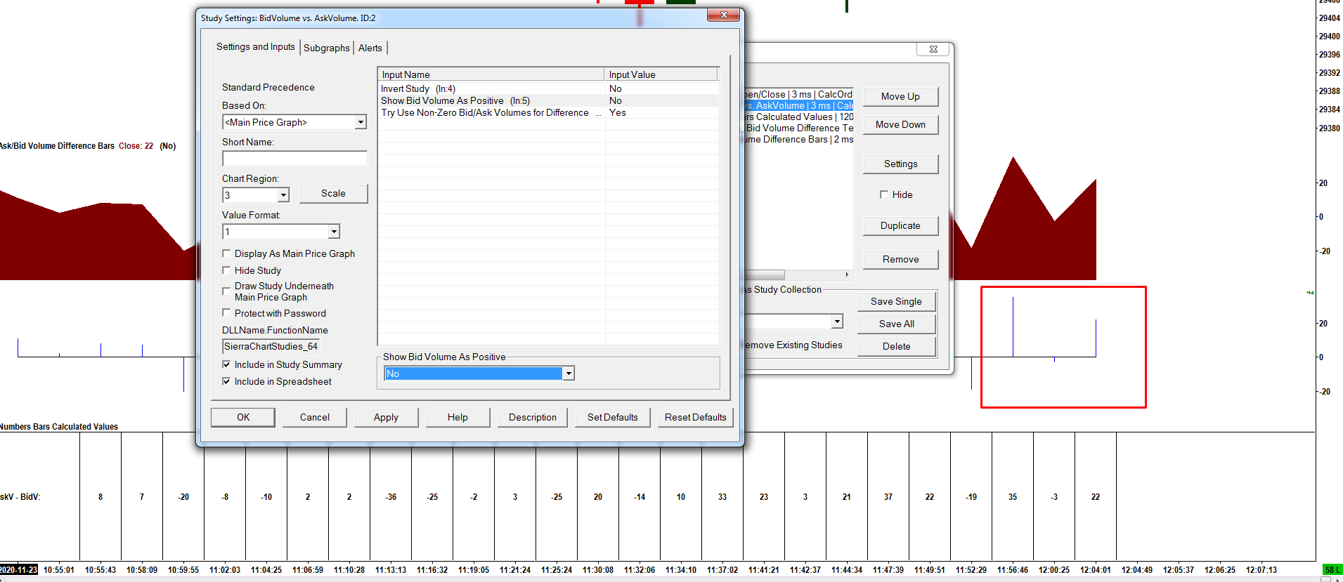 Have a look at this particular study: Bid Volume vs Ask Volume Sierra Chart Support - Engineering Level Your definitive source for support. Other responses are from users. Try to keep your questions brief and to the point. Be aware of support policy: https://www.sierrachart.com/index.php?l=PostingInformation.php#GeneralInformation For the most reliable, advanced, and zero cost futures order routing, *change* to the Teton service: Sierra Chart Teton Futures Order Routing |