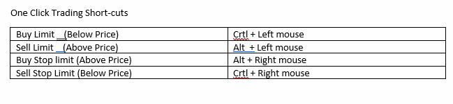 I have enabled the one click order entry from the chart, there are preconfigured keys to order directly from the chart (picture attached of the default keys configuration). I would like to change as Crtl + left mouse click is a very risky key, if I by mistake used to while using the drawing tolls or price scale zoom in out etc it is triggering an order (very unsafe). I would like to change it with combination like alt + shift + left click or etc. Hope you get my point. |