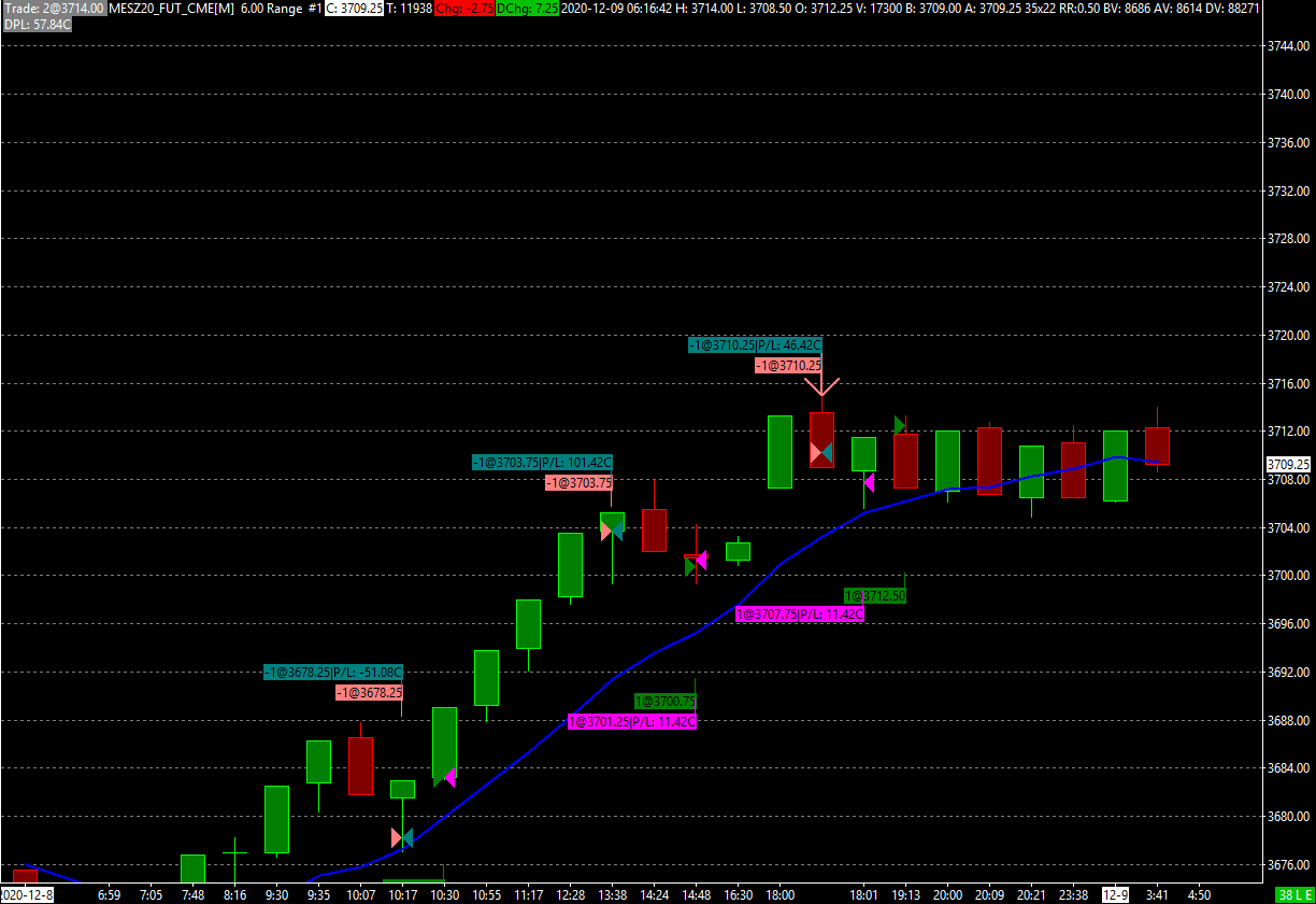 Hello. This happened overnight all of a sudden. The chart trade labels are mixed up, showing Sells in the color of Buys and showing P/L where previously it didn't. As far as I can tell, the trades are correct, it's just the info displayed on the chart that got wonky. Here's the image: https://www.sierrachart.com/image.php?Image=1607512606558.png . I'm using a simple 2 contract strategy where I sell 2, buy 1 at a target, move to BE and leave the other contract to run. So the indicators should show 2 sells, then a buy, then another buy with P/L (or 2 simultaneous buys in case of stop out). That's how it was working fine until yesterday. Anything I'm missing?