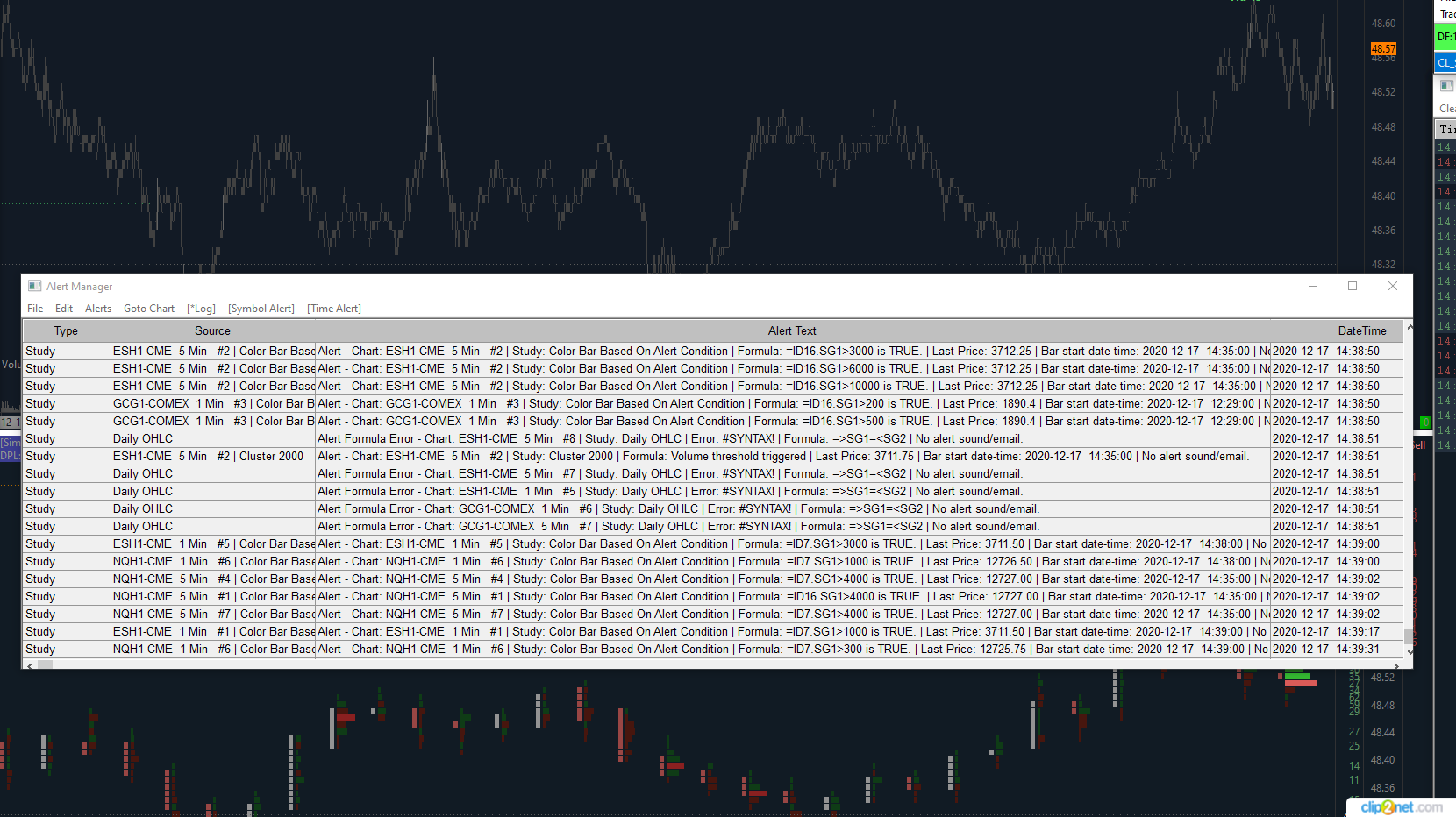 Refer to the information here: Study/Chart Alerts And Scanning: Alerts Log For the most reliable, advanced, and zero cost futures order routing, use the Teton service: Sierra Chart Teton Futures Order Routing |