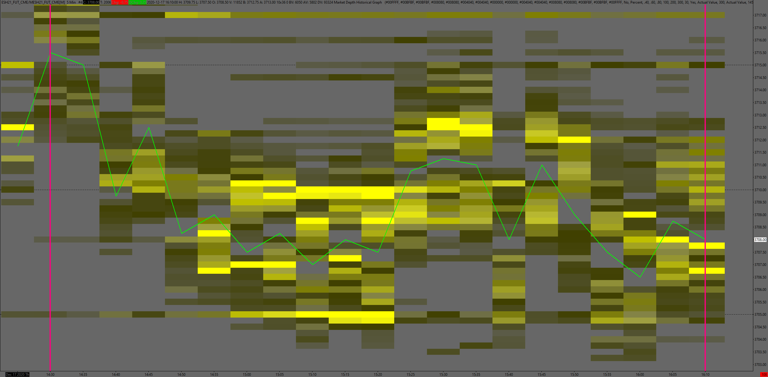 Hi, Is there or is it possible to add a feature for MDHG to be independent of the current intraday chart bar period? For example: I would like the MDHG from Image 1 a 5 minute chart, to look like the MDHG on Image 2 a 5 sec chart Therefore, I can trade on a 5 minute chart with the detail and nuance of a 5 sec MDHG on the same chart. I have also attached a screenshot from Bookmap with 5 min candles to help further illustrate. Image1 5m: http://www.sierrachart.com/image.php?Image=1608288058127.png Image2 5sec: http://www.sierrachart.com/image.php?Image=1608287671858.png Date Time Of Last Edit: 2020-12-18 11:21:15
