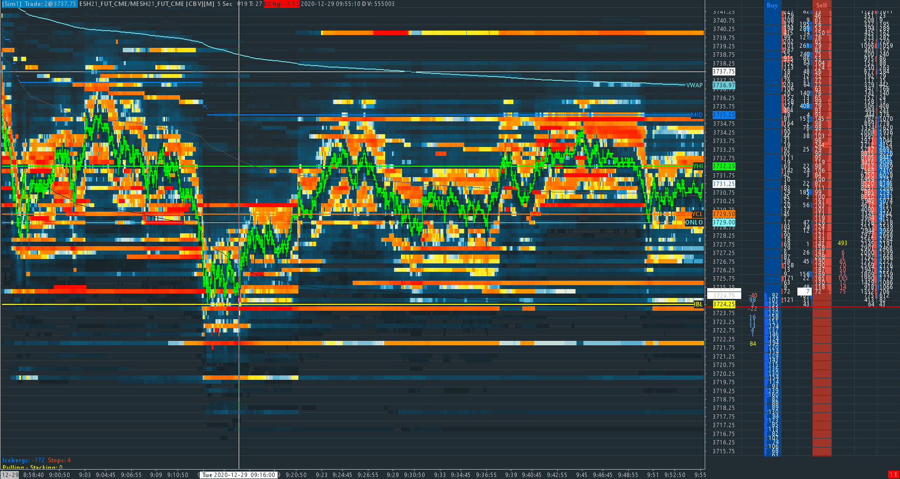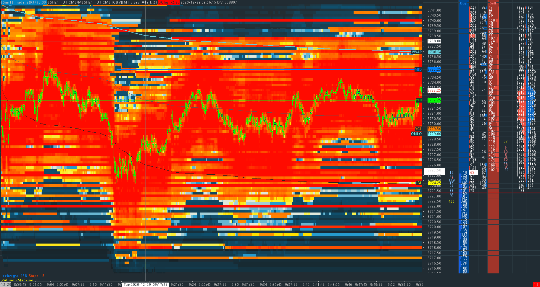 Hi. Anyone found optimal settings for Market Depth Historical Graph? I asked SC support for percentage for highest quantity, and they delivered. Thank you SC engineers. I thought that would solve the problem where I have to change highest quantity throughout the day to get consistent coloring on the chart when the depth increases or decreases throughout the day. Sort of like bookmap does it. But I still get the same problem where with the same settings I go from 1st pic to 2nd pic. I actually get better results with "Actual Values" for "Highest Quantity". The chart stays more consistent through the day. But it still can change dramatically, especially in the morning. 1st pic. http://www.sierrachart.com/image.php?Image=16092626788.png 2nd pic http://www.sierrachart.com/image.php?Image=1609262748794.png I know there's huge difference how SC and bookmap are designed and work. Any help/ suggestions are greatly appreciated. I also included my settings for market depth historical study. Thank you. |