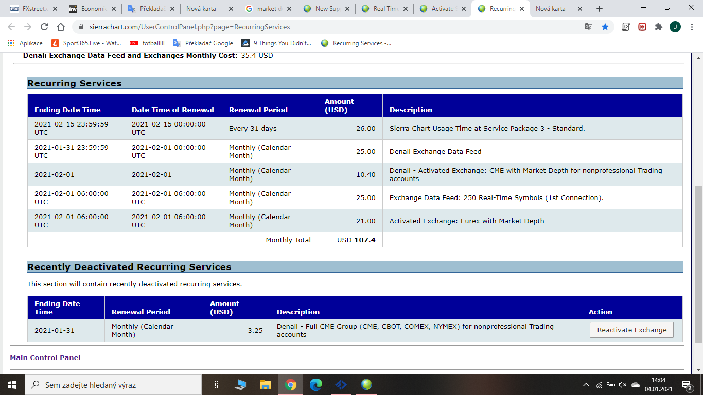 Hello, I only need data for DAX with market depth, nothing else. I spend over 100 dolars for services. I bought Denali Exchange Data Feed, Denali - Activated Exchange: CME with Market Depth for nonprofessional Trading accounts, Exchange Data Feed: 250 Real-Time Symbols and Activated Exchange: Eurex with Market Dept. And still it is not working. On November wvrything worked and now not. I cant find anything what should I do. Can you please help me. |