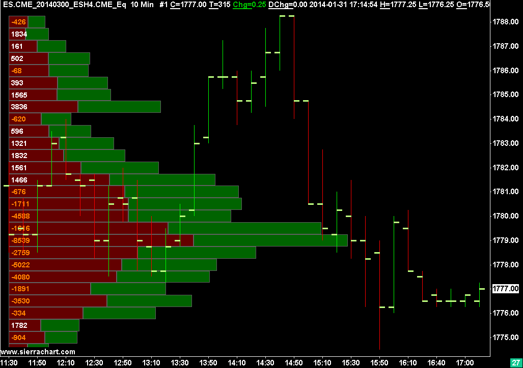 http://www.sierrachart.com/image.php?l=1391378255667.png It is now done and will be released tomorrow. v1094 nonCLR VbP --> Volume Numbers Text Color and Size -> AutoColoring: Based on +/- It does not work