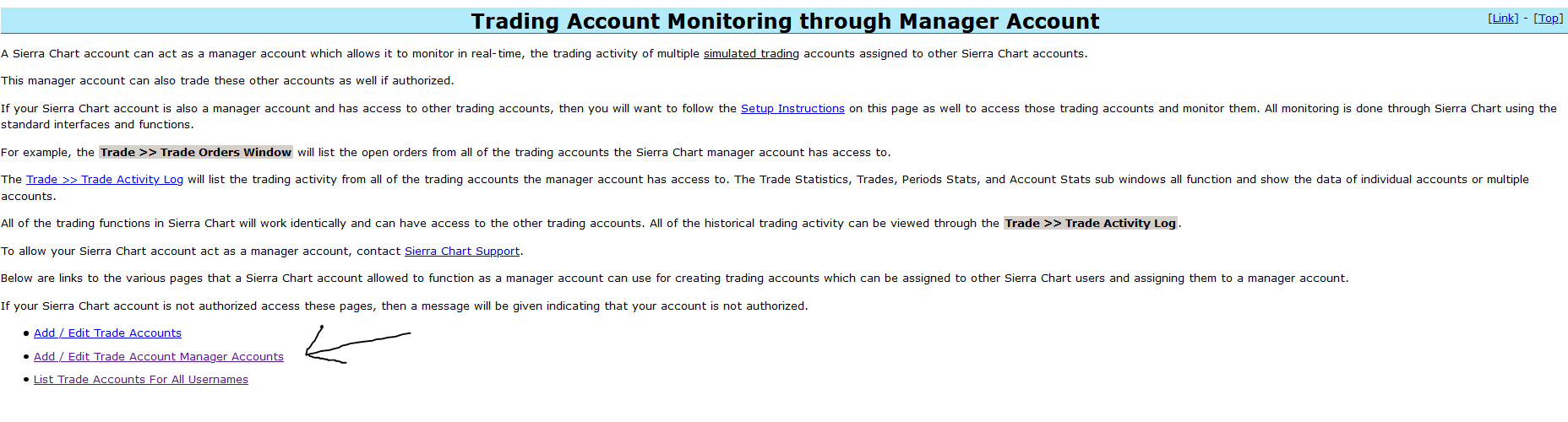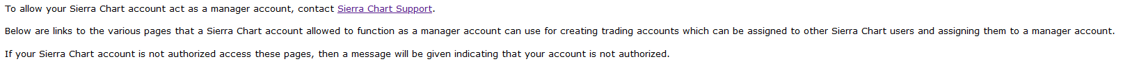 Hi, Can you provide the details required to run a manager account please. I will be working with other traders in a sim environment and this would allow me to streamline the process. They will have there own Sierra Subscriptions and Data feeds etc already. |