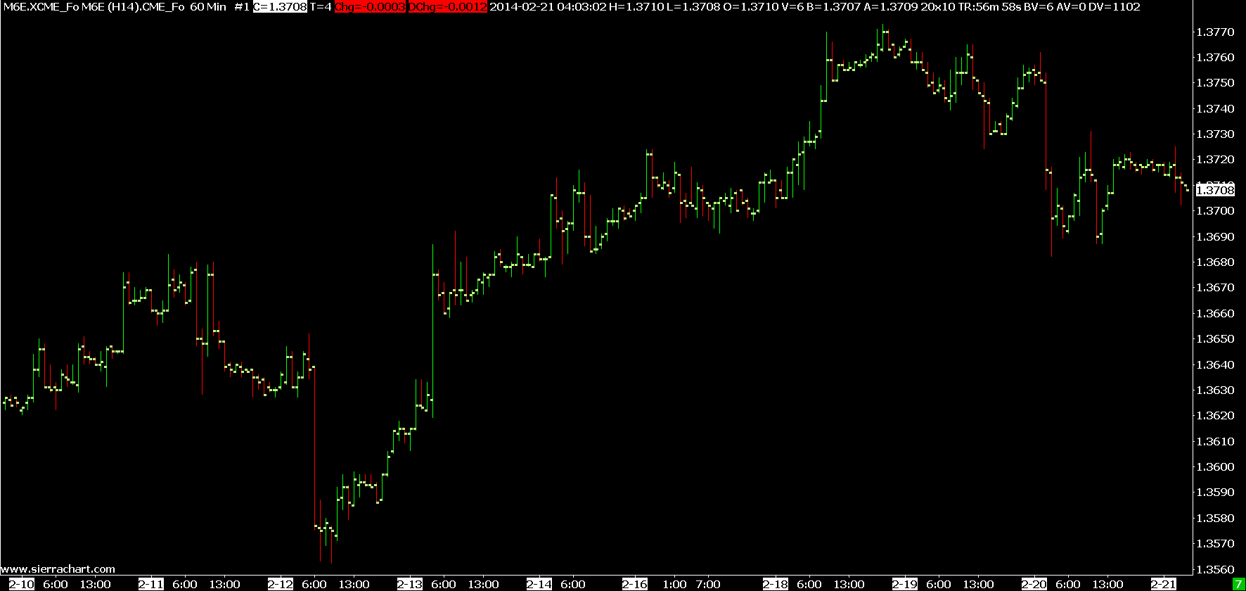 Do the following: 1. Restart Sierra Chart. 2. Open an Intraday chart for: M6E.XCME_Fo M6E (H14).CME_Fo 3. If you see "Download Failed", then provide us the Message Log again by following these steps: https://www.sierrachart.com/index.php?l=PostingInformation.php#log Use the "Send for Analysis" button and let us know when it is sent. 4. If the historical data download is successful, but you are missing data in the chart from previously, then select Edit >>Delete All Data and Download. In our testing, we successfully got the data for this chart: http://www.sierrachart.com/image.php?l=1392973439544.png So we wonder what the problem is on your side. Possibly a firewall or other connectivity problem. We are not completely sure. Sierra Chart Support - Engineering Level Your definitive source for support. Other responses are from users. Try to keep your questions brief and to the point. Be aware of support policy: https://www.sierrachart.com/index.php?l=PostingInformation.php#GeneralInformation For the most reliable, advanced, and zero cost futures order routing, *change* to the Teton service: Sierra Chart Teton Futures Order Routing Date Time Of Last Edit: 2014-02-21 09:04:17