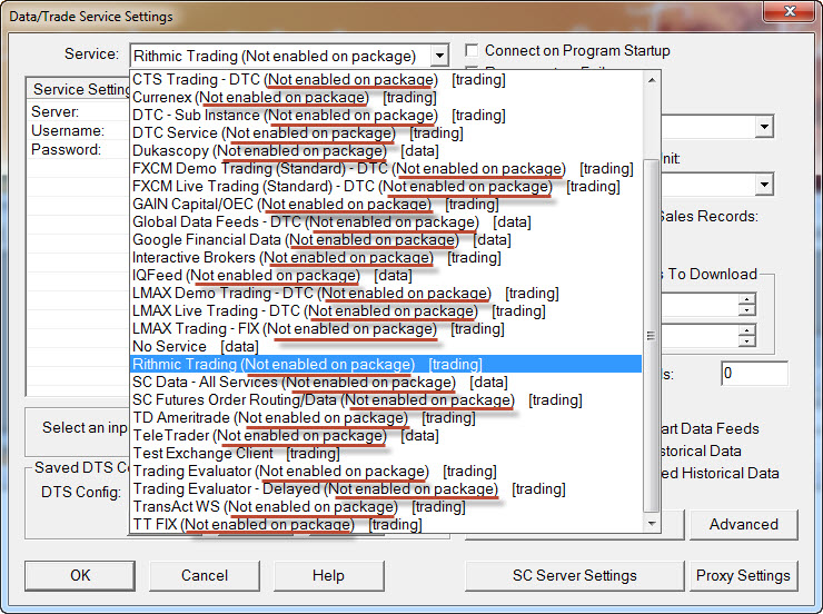 As you can see in Data/Trade Service Settings popup menu not only Rithmic but no other Datafeeds are enabled with this package, no access to any datafeeds and always forcing to automatically upgrade at login even if I already set the service to rithmic before restarting SC. What the change did you make on package 3 the latest days ? particularly the 15th of february when you extend with my account as the 14th all was still working perfectly. This is important for my work, I'm really getting scared. Please help. Date Time Of Last Edit: 2022-02-17 22:01:44
