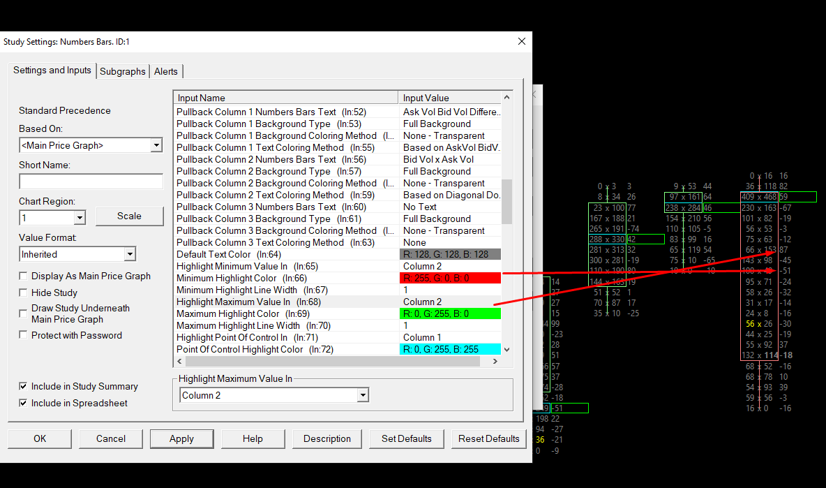 We are not sure why it is not highlighting the Minimum, but you can work around the issue for now by changing the Input for Highlight Maximum/Minimum Value Based On to Ask Volume Bid Volume Difference. Refer to the information here: Numbers Bars: Highlight Maximum/Minimum Value Based On We will look into why the option for Automatic is not allowing for both Maximum and Minimum. For the most reliable, advanced, and zero cost futures order routing, use the Teton service: Sierra Chart Teton Futures Order Routing |