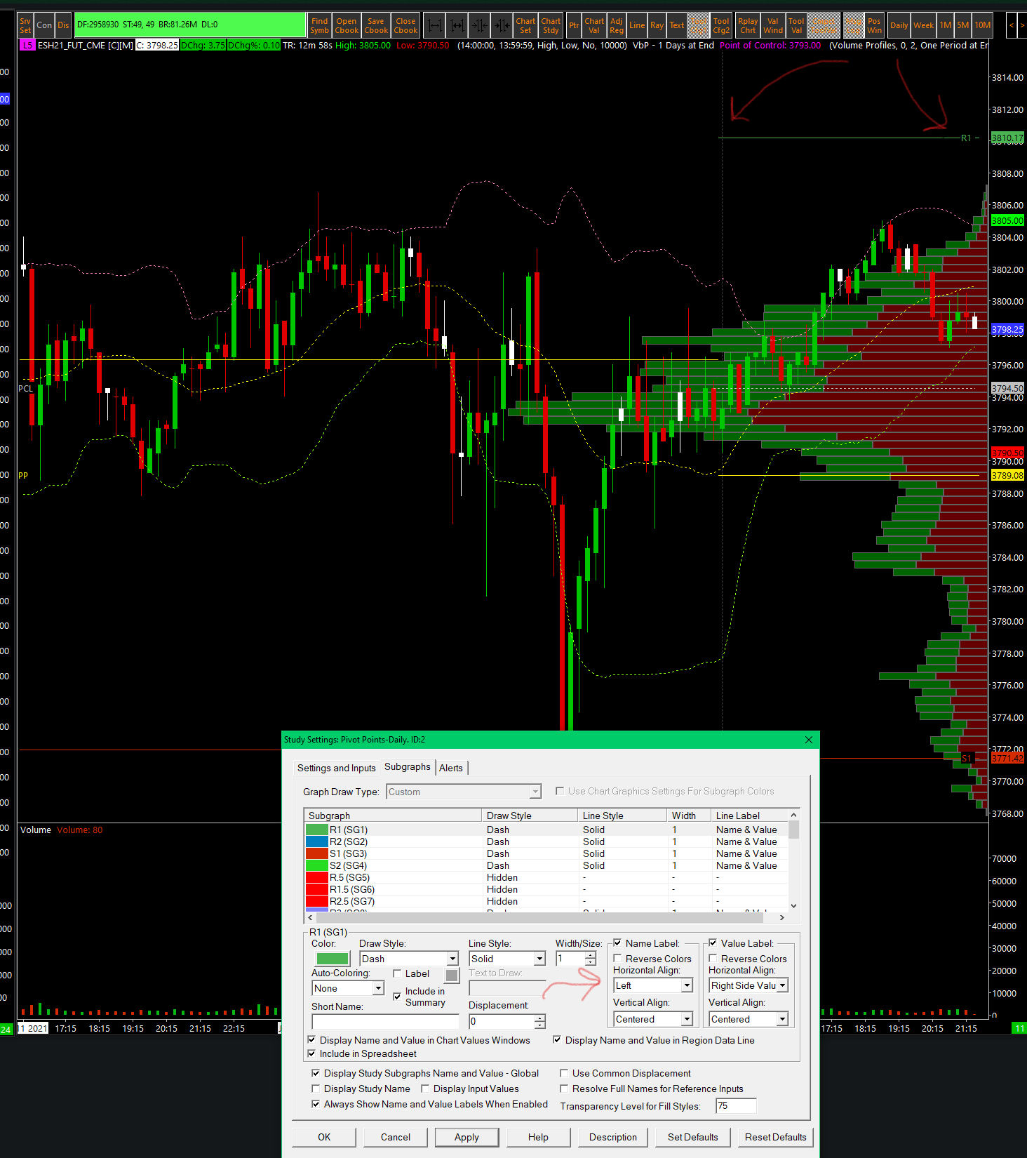 I believe the pivot point 'left' label isn't aligning correctly. The 'Left Edge' aligns to the left of the chart as expected. 'Left' should align to the left side of the pivot line but is aligned to the right. See attached image. Thanks Chris Date Time Of Last Edit: 2021-01-13 06:47:48