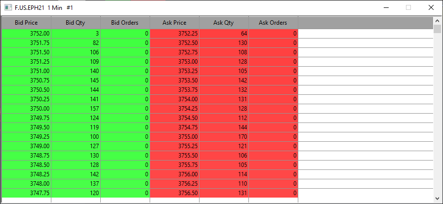 Depth of Market Data doesn't show any numbers