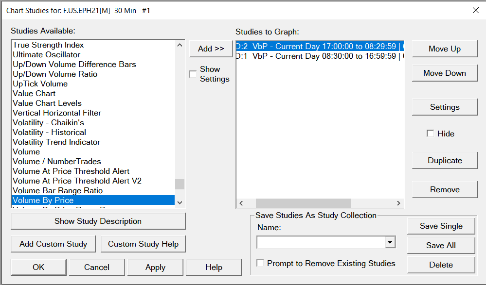 We apologize, we gave the wrong link. This is the section we intended to link to: Volume By Price Study: Displaying Separate Profiles for Day and Evening Sessions Sierra Chart Support - Engineering Level Your definitive source for support. Other responses are from users. Try to keep your questions brief and to the point. Be aware of support policy: https://www.sierrachart.com/index.php?l=PostingInformation.php#GeneralInformation For the most reliable, advanced, and zero cost futures order routing, *change* to the Teton service: Sierra Chart Teton Futures Order Routing Date Time Of Last Edit: 2021-01-18 19:32:10
