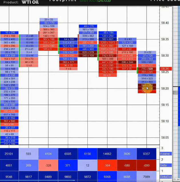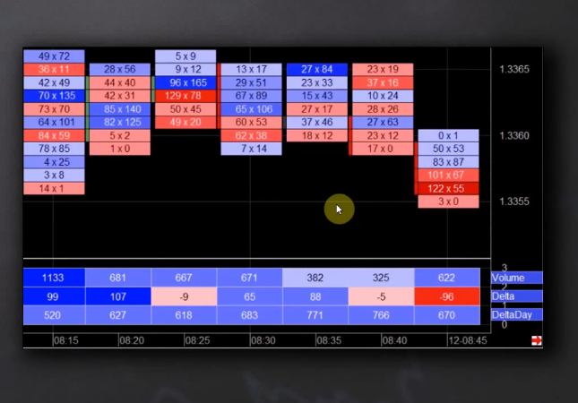 Hi there, I've been watching a course that was using MarketDelta and I'm trying to copy that Footprint setting. I spent few hours looking into the documentation you provide but I'm still confused and didn't find what I was looking for. I would like to set it like this. When Delta is negative for a price: -colour red (light red, normal red or dark red) for a price -depending of the total volume within that negative delta price box (Bid + Ask) to display a particular type of red(light, normal or dark) However those 3 nuances are not mandatory in each rotation. (i.e. there can be rotations only with light colours(low volume) or there can be rotations with only dark colours) I don't know if I explained this well, hope the attached photos will give you a better understanding. Thanks! Alex |