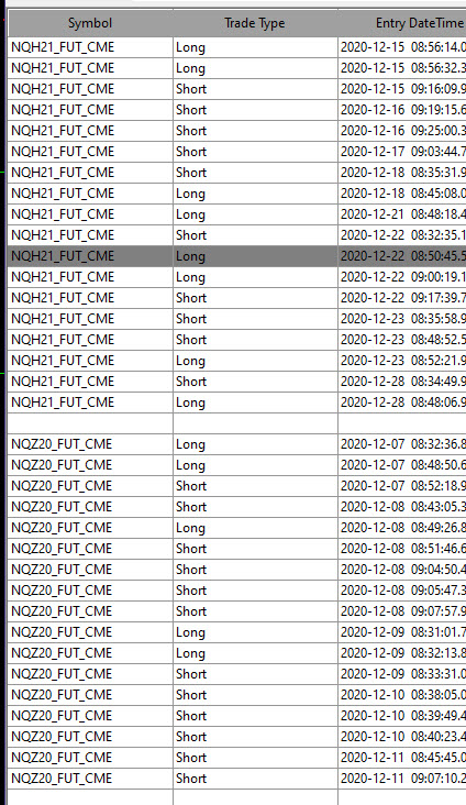 Ironically this was on my to-do list for the day and was actually getting ready to try and set this up. I assumed there was a way to map all the futures symbols for example NQ or ES into a single one for reports, PnL, etc? Is there a way or setting to display symbols like NQZ20_FUT_CME, NQH21_FUT_CME, NQM21_FUT_CME --> into the Associated Underlying Symbol ie. NQ to track all PnL data? Date Time Of Last Edit: 2021-01-21 23:38:40