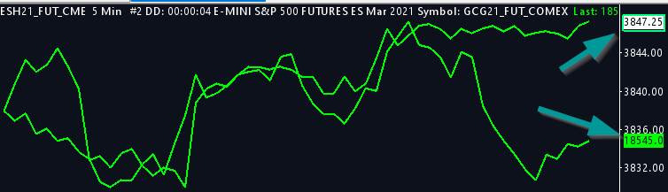Hi, I have ES (main price graph) and GC (add symbol) on a chart. ES value format on the chart shows (as an example) 3845.75 but GC shows up as 18543.00 . GC should show as 1854.3 . I can't seem to make GC show as 1854.3 . Attached is screenshot of where I'm talking about. Is there a way for me to update it so GC shows up with the proper value? Thanks. |