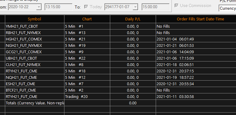 This led me to think only charts with order fills would appear & show data. Yet in my case I have ~25 charts, ~5 I actively trade (show up in Chart Stats), the ~3 charts in question --> YM, RB, BTC (screenshot) show 'No Fill', the remaining 17 remaining charts don't show up at all (as I believe they shouldn't because there are no order fills). My confusion is why are YM, RB, BTC charts showing 'no fill' and the other 17 are not? I found toggling Trade --> Show Orders & Positions will lead to the chart showing up in Chart Stats and displaying 'No Fill' even though there are no order fills. So in my case YM, RB, BTC had 'Show Orders & Positions' checked while the other charts were unchecked. Ok problem solved, just confusing in the manual. It would be nice to have a Chart --> 'Display in Charts Stats' option. Example I have 'Show Orders & Positions' with many charts (Historical, TPO, Weekly, 5 Min, Trade MBO, etc) Chart Stats then has the same symbol represented 5 times... Thanks! Date Time Of Last Edit: 2021-01-27 03:51:25