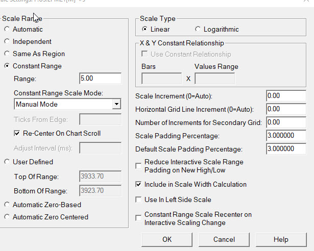 There are various chart Scale Range options available: Chart Scale and Scale Adjusting Look them over and choose the one that is appropriate. Sierra Chart Support - Engineering Level Your definitive source for support. Other responses are from users. Try to keep your questions brief and to the point. Be aware of support policy: https://www.sierrachart.com/index.php?l=PostingInformation.php#GeneralInformation For the most reliable, advanced, and zero cost futures order routing, *change* to the Teton service: Sierra Chart Teton Futures Order Routing Date Time Of Last Edit: 2021-01-28 09:34:20